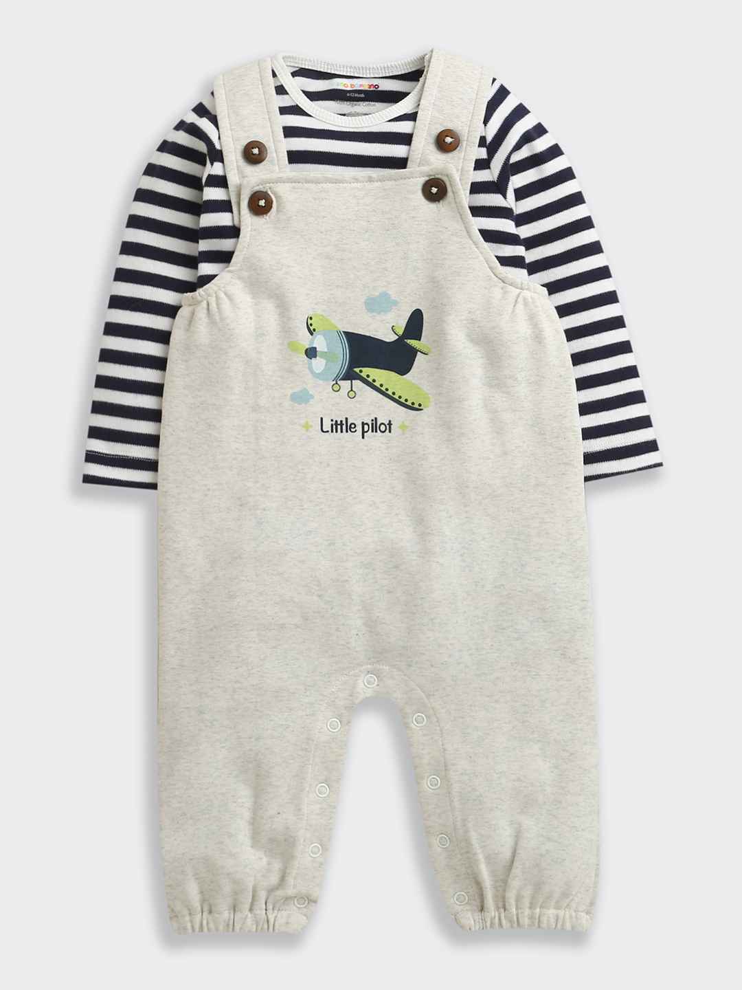 - GOTS Certified 100% Organic Cotton Dungaree With Attached T-Shirt For Unisex Kids.