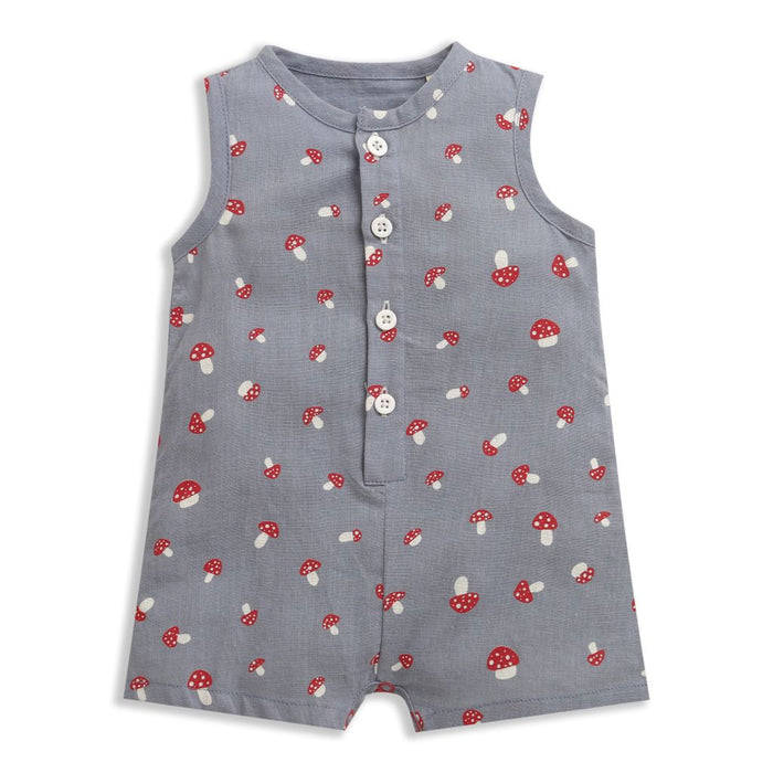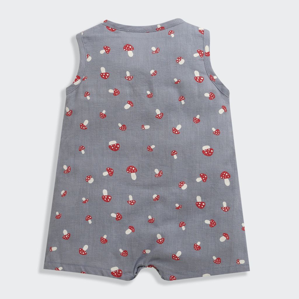 The romper features a soft, breathable fabric that is gentle on your baby's delicate skin. The sleeveless design ensures optimum freedom of movement, allowing your little one to explore and play with ease. The classic grey color adds a touch of sophistication to the ensemble, making it suitable for any occasion.