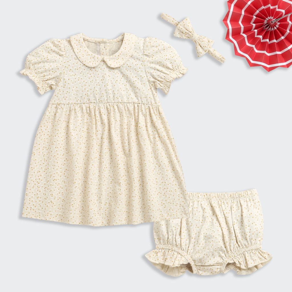 - GOTS Certified 100% Organic Cotton Printed Dress With Bloomer Set For Baby Girl.