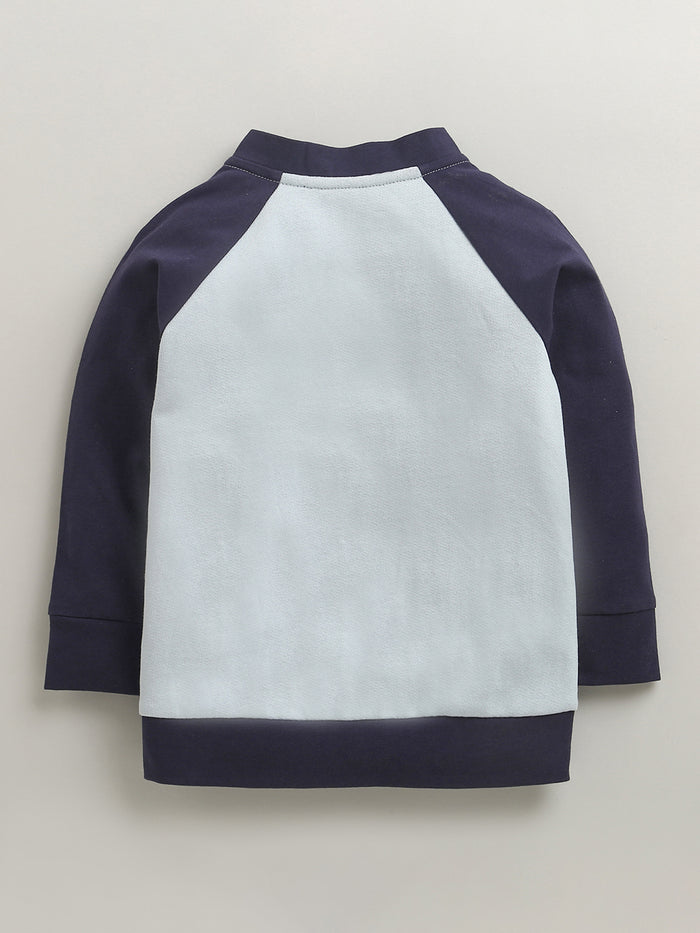 Nino Bambino Fleece Long Sleeve Blue Printed Sweatshirt For Unisex Kids